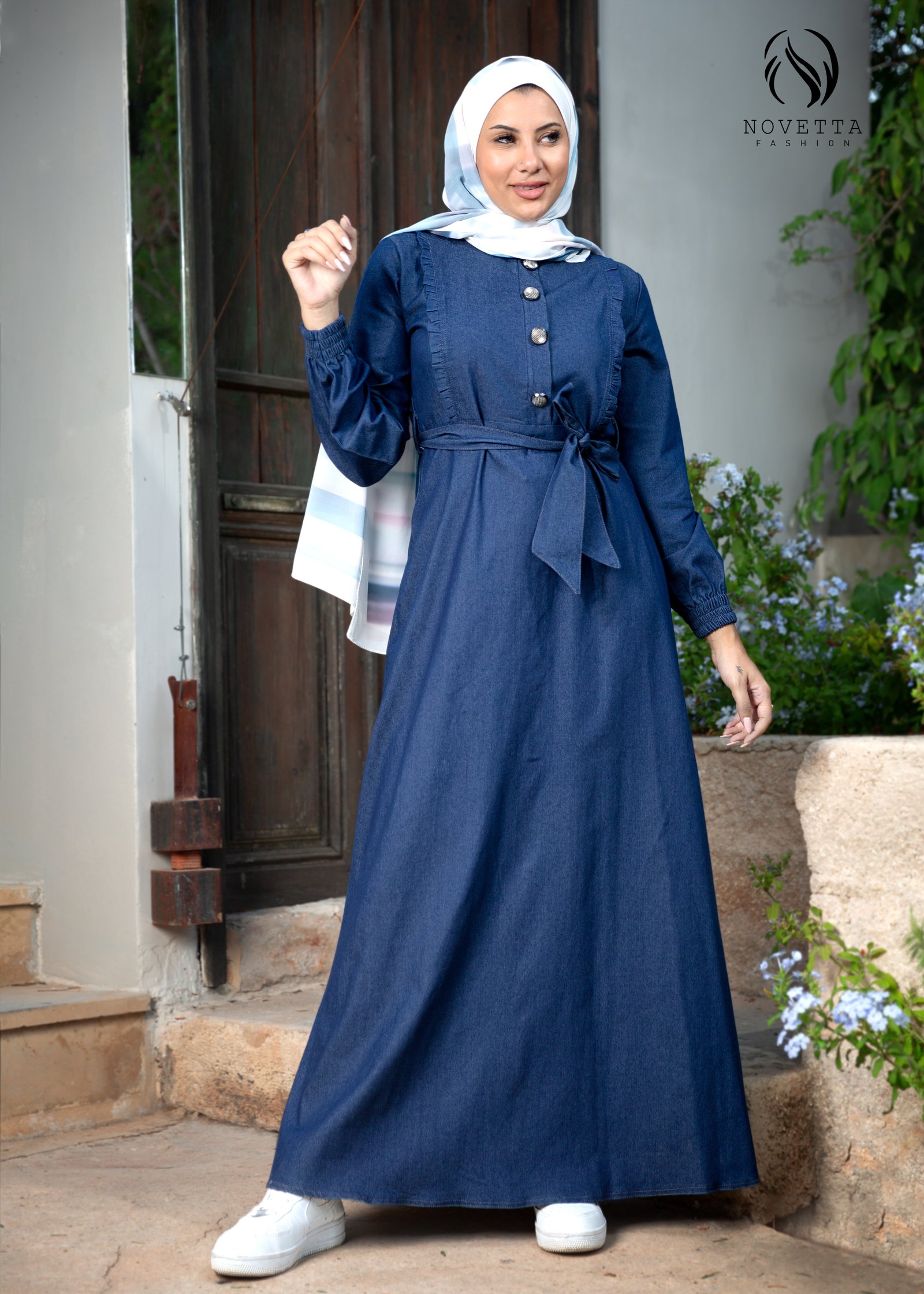 فستان جينز أنيق بتصميم عملي وحزام على الخصر لإطلالة شبابية مريحة.والمقاسات وافية وواسعة