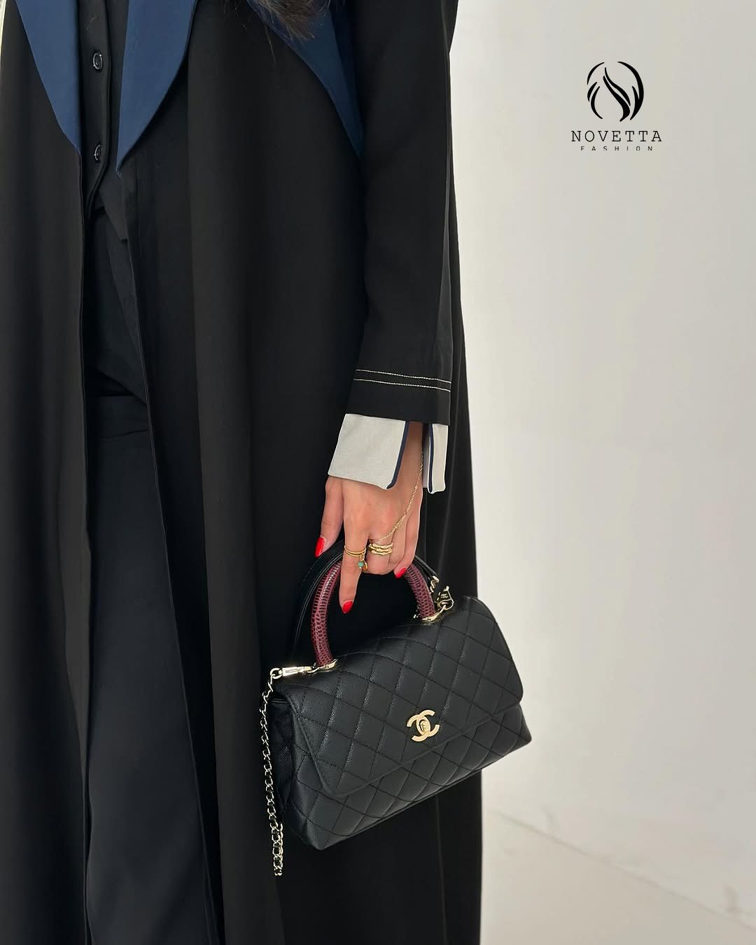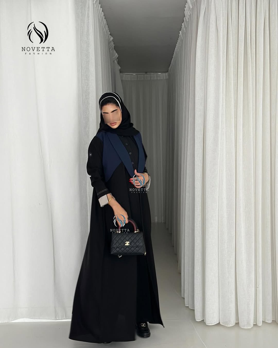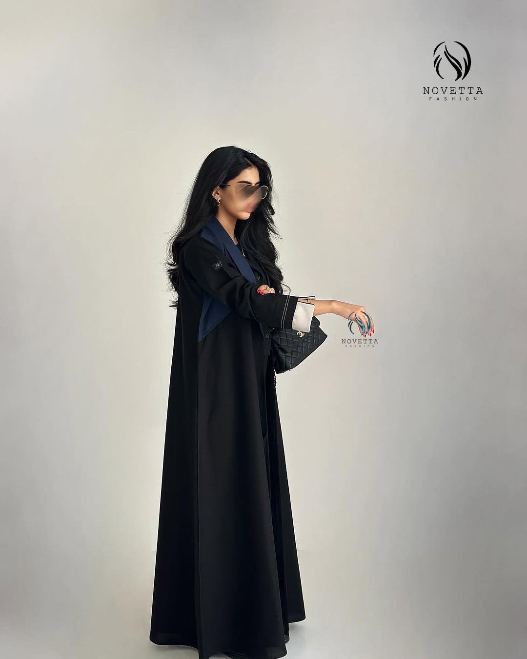 بليزر بتفصيل كلاسيكي مميز، بلمسة صدر جنزاري أنيقة تضيف عمق وجاذبية للعباية. تصميم يجمع بين القوة والرقي.بخامة فكتوريا كوري اسود والمقاسات وافية وواسعة