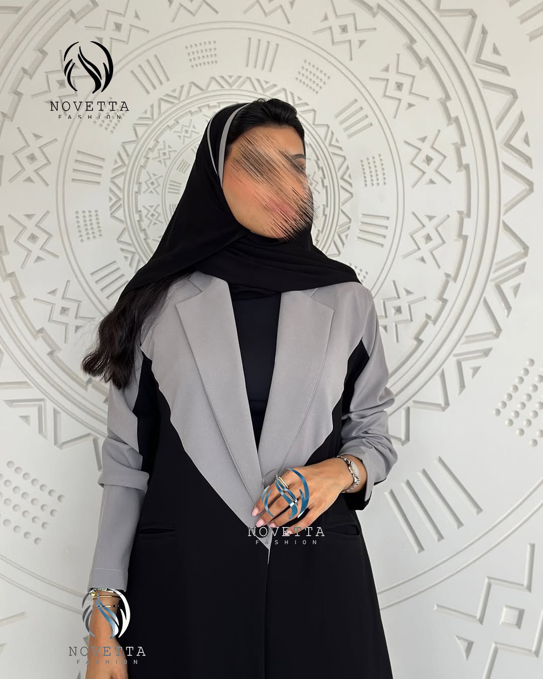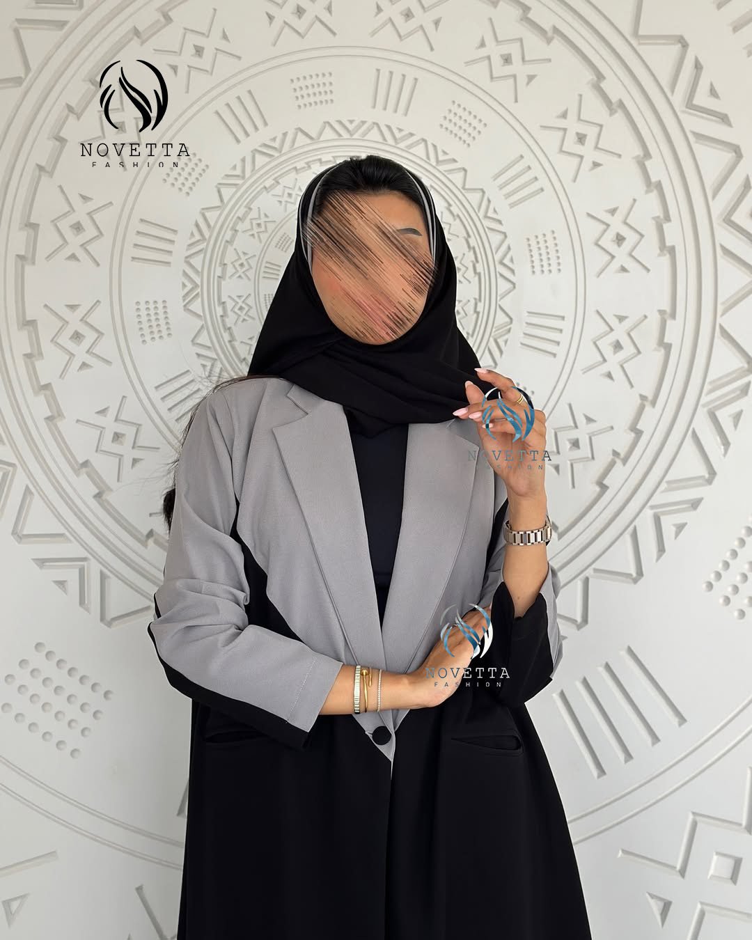 عباية فاخرة بتصميم أنيق وانسيابي، بأكمام واسعة مزينة بربطة جانبية وأزرار ناعمة تضيف لمسة أنثوية راقية.بخامة فكتوريا كوري والمقاسات وافية وواسعة