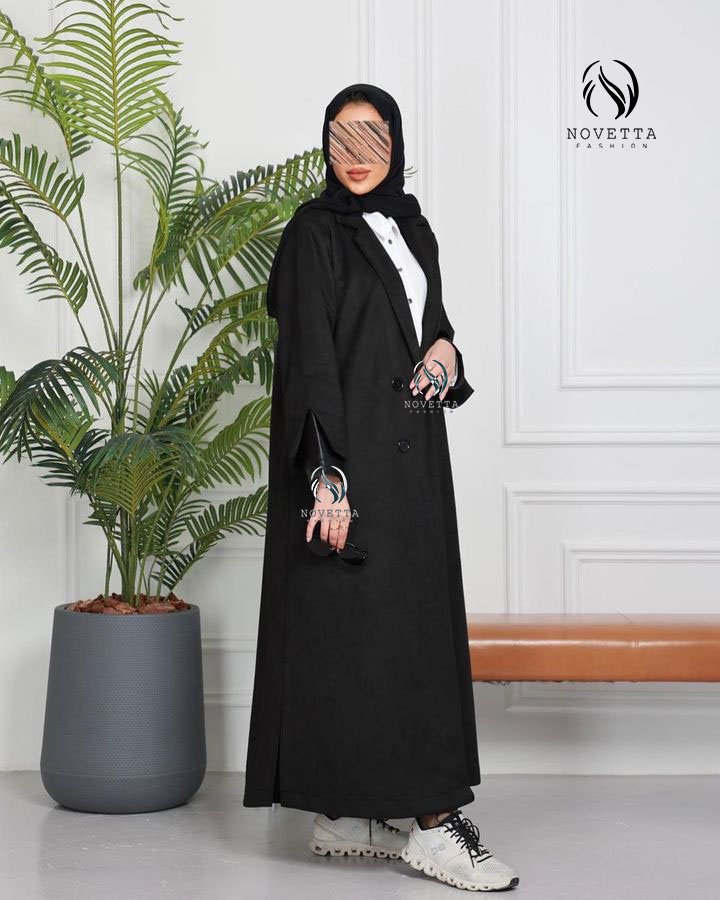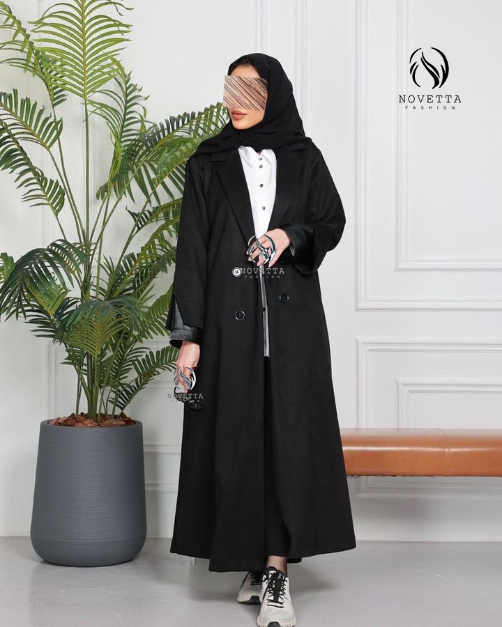عباية سوداء بتصميم أنيق مع تفاصيل جلدية على الأكمام، تضيف لمسة جريئة تناسب الإطلالة الكلاسيكية والعصرية.بخامة شامواه اسود مع كمام جلد والمقاسات وافية وواسعة