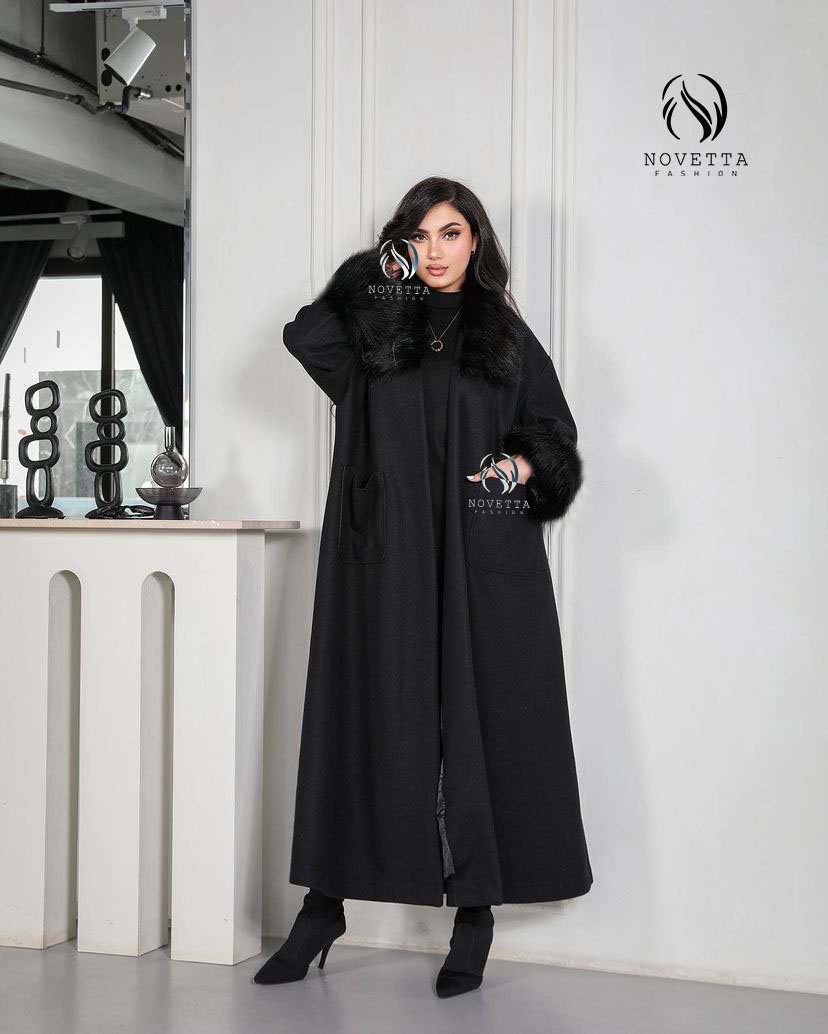 عباية شتوية أنيقة باللون الأسود، مزينة بلمسات فرو ناعمة على الرقبة والأكمام، بتصميم واسع وعملي يدمج الفخامة مع الدفء.بخامة جوخ تقيل مبطن والمقاسات واسعة ووافية