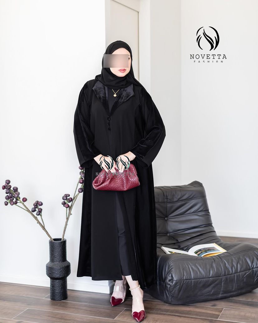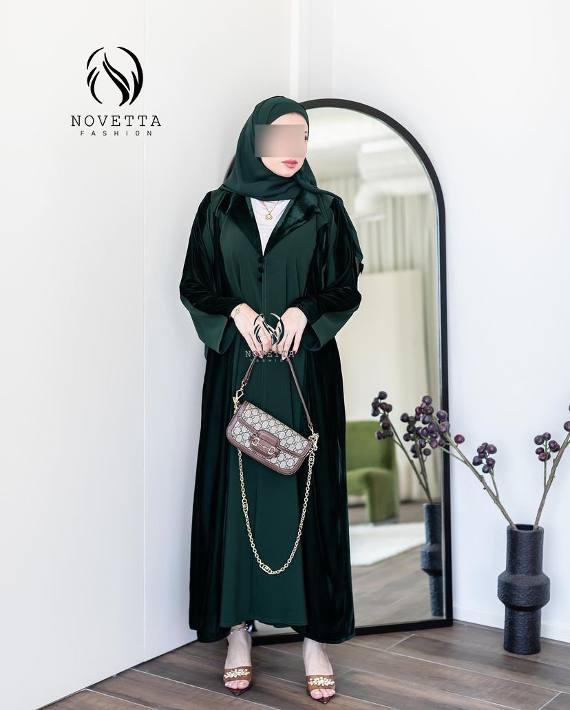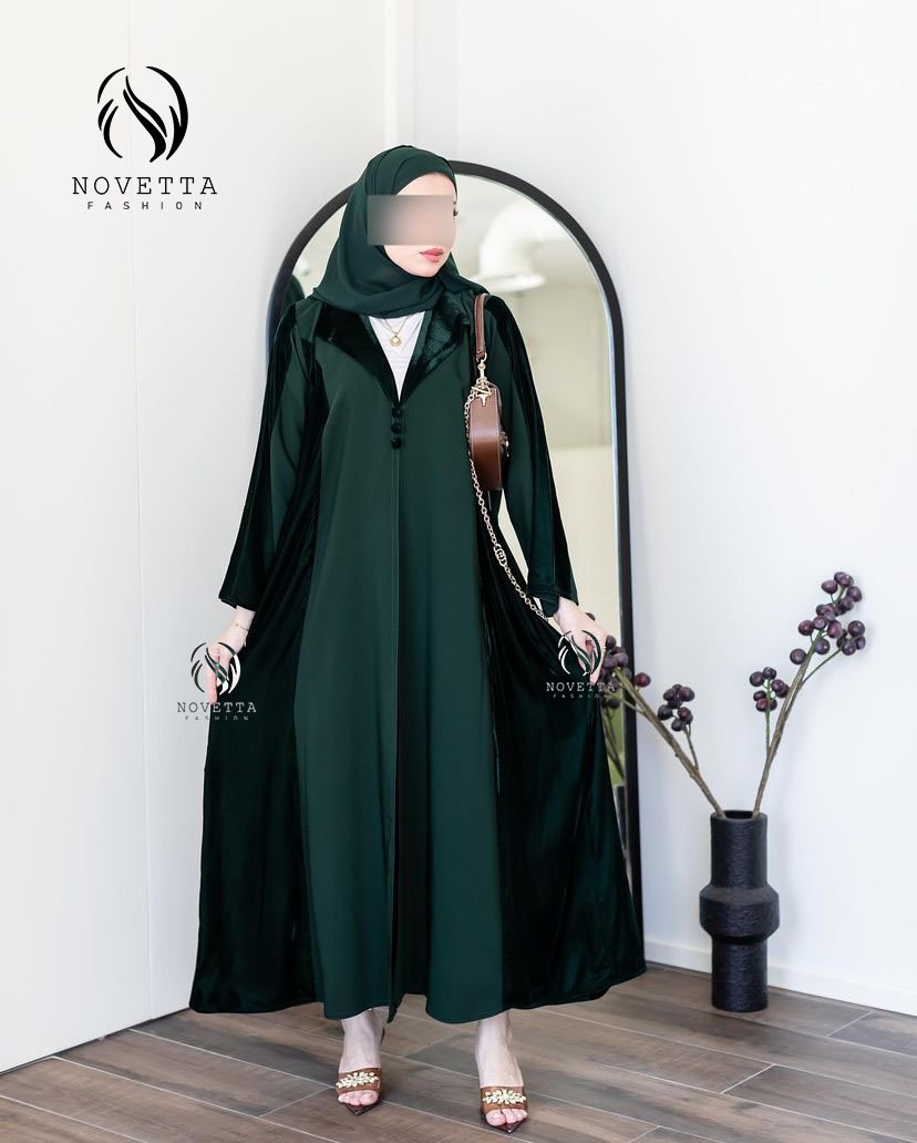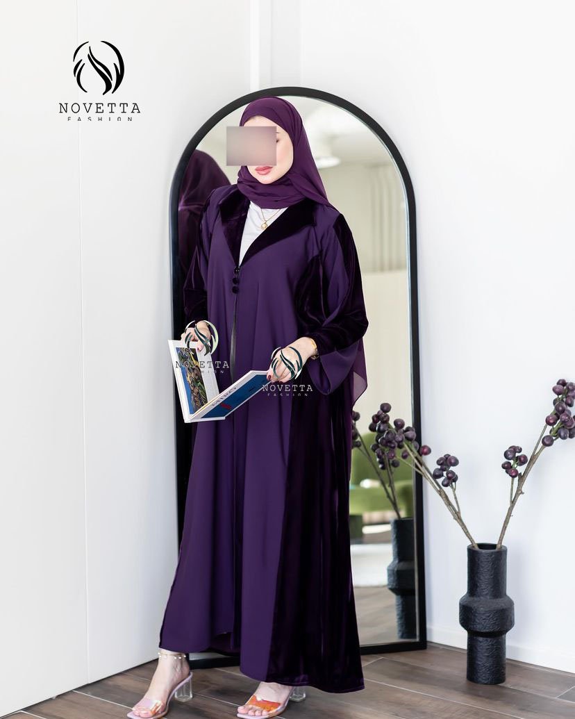 تصميم راقي بخامة مخملية فاخرة، متوفر بعدة ألوان أنيقة (أخضر، أسود، بنفسجي)، بستايل عملي وفخم بنفس الوقت.بخامة فكتوريا كوري مخمل والمقاساات وافية وواسعة