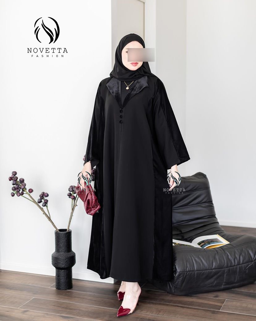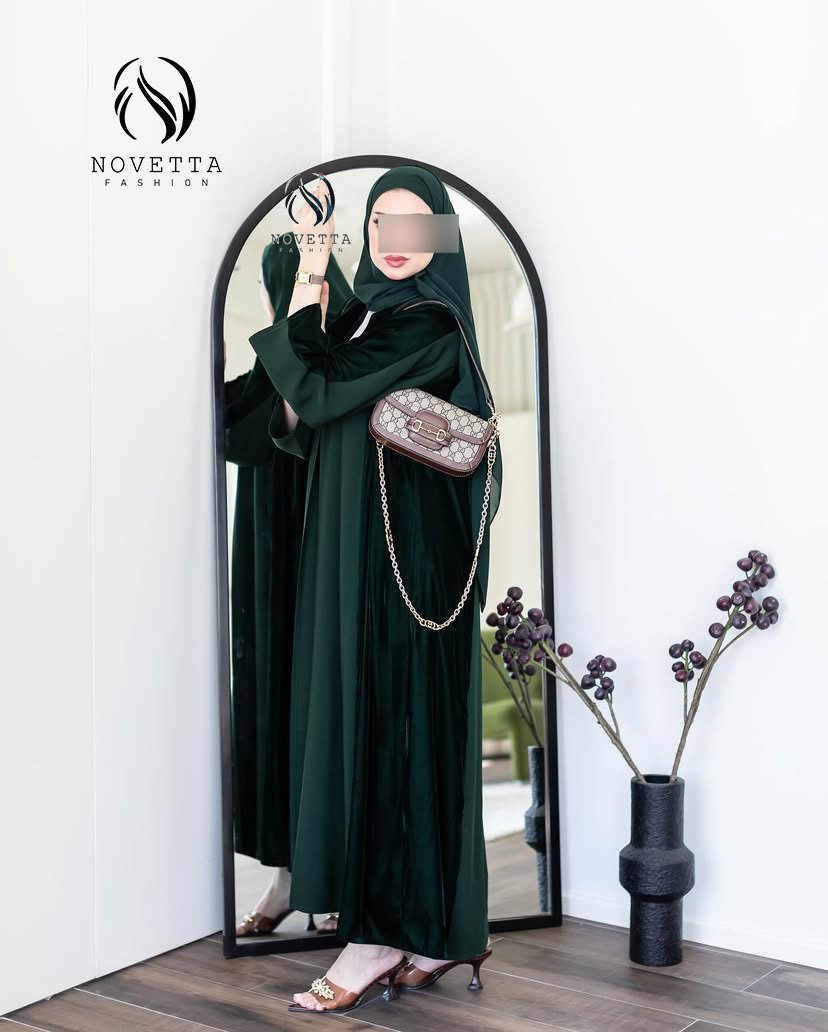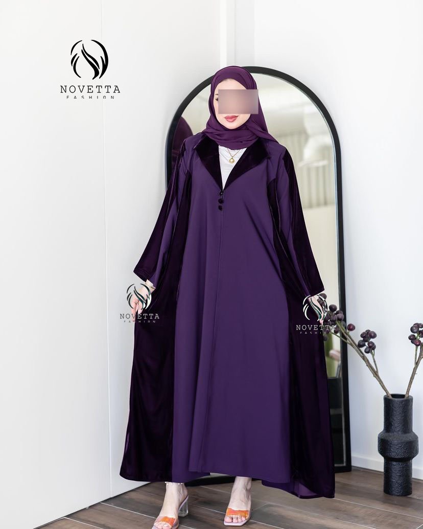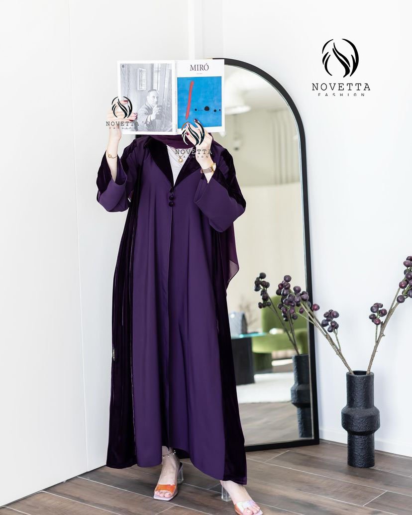 تصميم راقي بخامة مخملية فاخرة، متوفر بعدة ألوان أنيقة (أخضر، أسود، بنفسجي)، بستايل عملي وفخم بنفس الوقت.بخامة فكتوريا كوري مخمل والمقاساات وافية وواسعة
